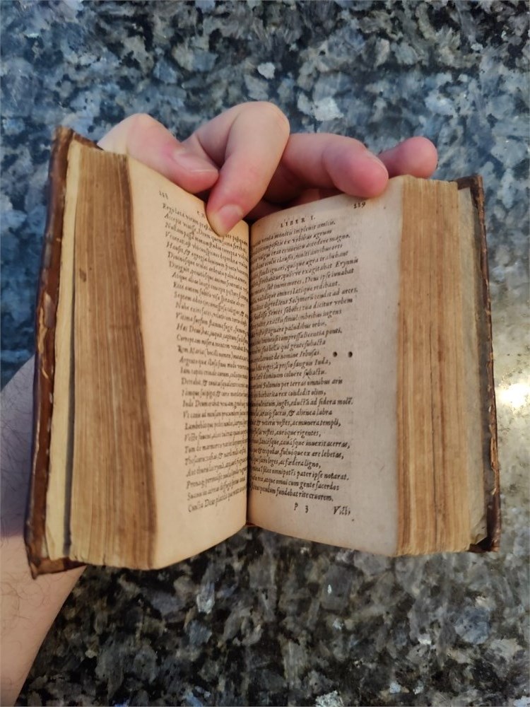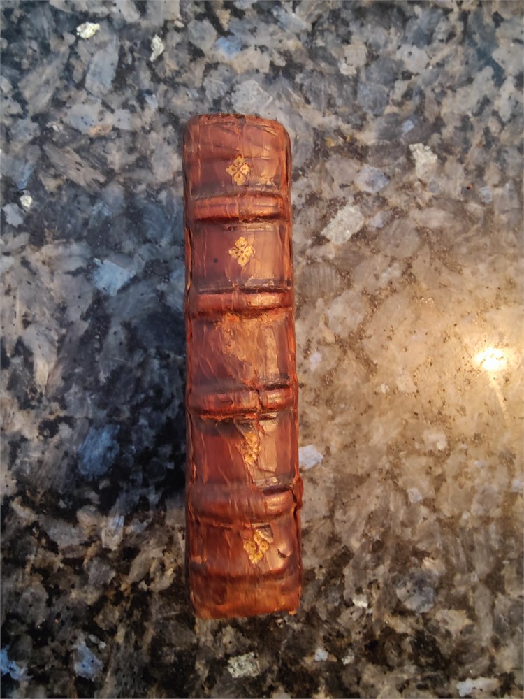 Rare 16th-century edition of Marci Hieronymi Vidae Cremonensis, Albae Episcopi, Opera (Marco Girolamo Vida, complete works). Printed in Lyon by Antoine Gryphius in 1581. Full original leather binding with raised bands and gilt decorations. Some wear on edges and spine, consistent with age. Pages complete and readable. A beautiful example of Renaissance printing and early Gryphius editions.
