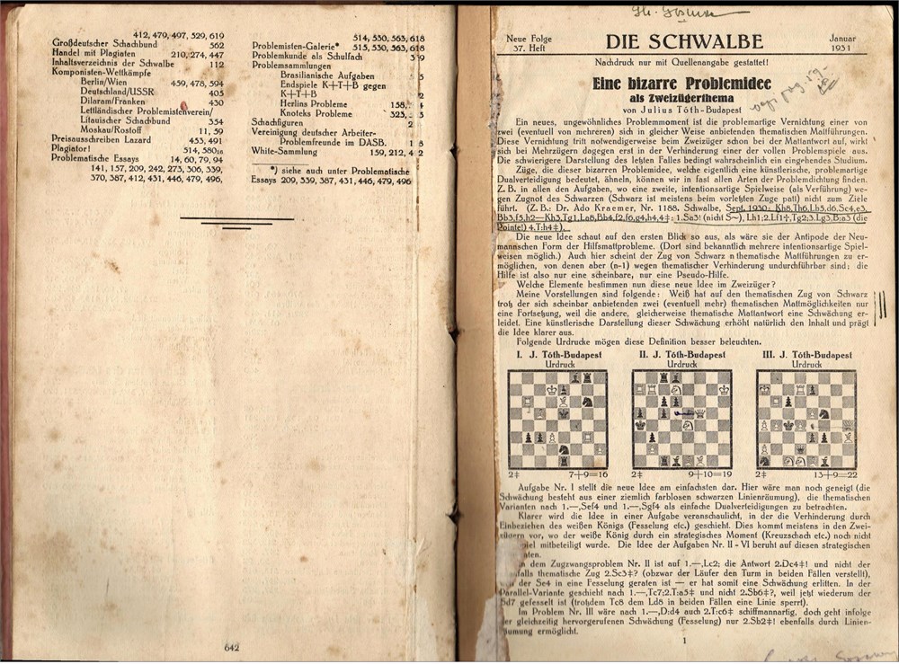 This is a “Die Schwalbe” volume which belonged to Gheorghe GOȘMAN, well known problem composer from Romania.