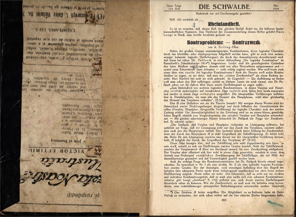 This is a “Die Schwalbe” volume which belonged to Gheorghe GOȘMAN, well known problem composer from Romania.
