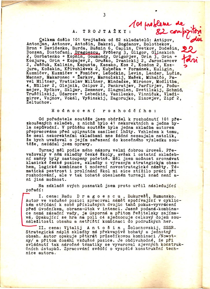 Condition: good to very good. Small spots on front cover, several annotations made by Radu DRAGOESCU, a good chess composer and winner of #3 section in this tournament, also a well known Romanian painter! [Set B]