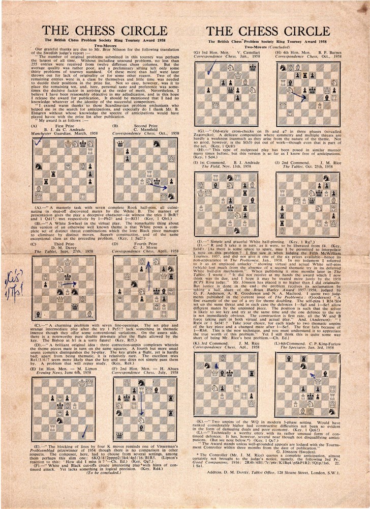 The Chess Circle - Reprinted from The Tablet, September 5th, 12th and 19th, 1959, printed on both sides, size 21x29 cm.