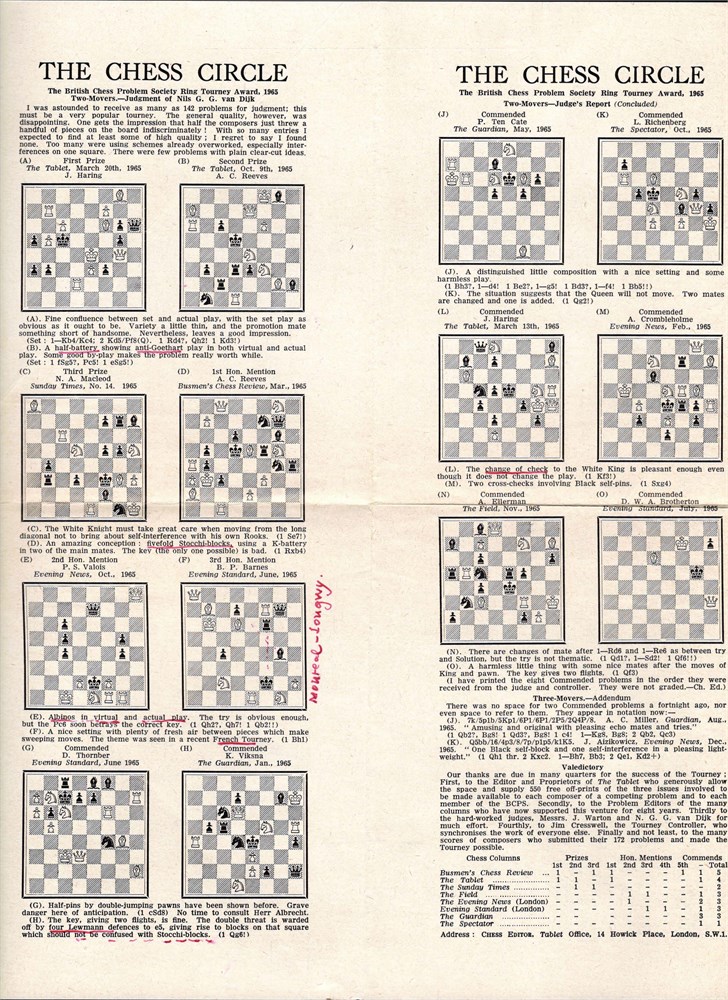 The Chess Circle - Reprinted from The Tablet, September 3rd, 10th and 17th, 1966, printed on both sides, size 24x29 cm.