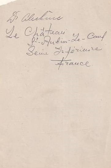 Alekhine. Dr. Alekhine’s signature and address written on a 5”x7” sheet of paper.