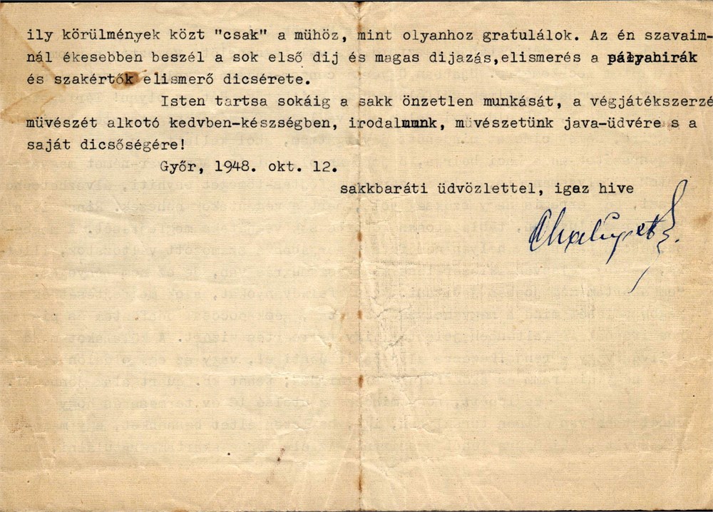 CHALUPETZKY F. - 1948.10.12, Gyor. Letter View Watchlist >