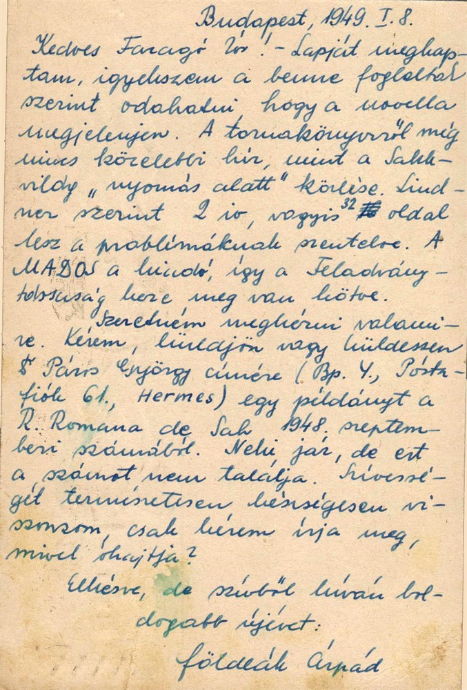 FOLDEAK Arpad - 1949.01.08, Budapesta. Postcard View Watchlist >