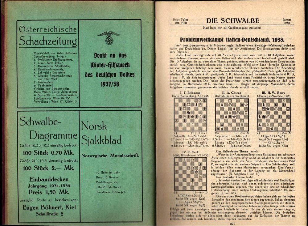 Die Schwalbe 1938, Neue Folge. Complete year, bound in good HC.