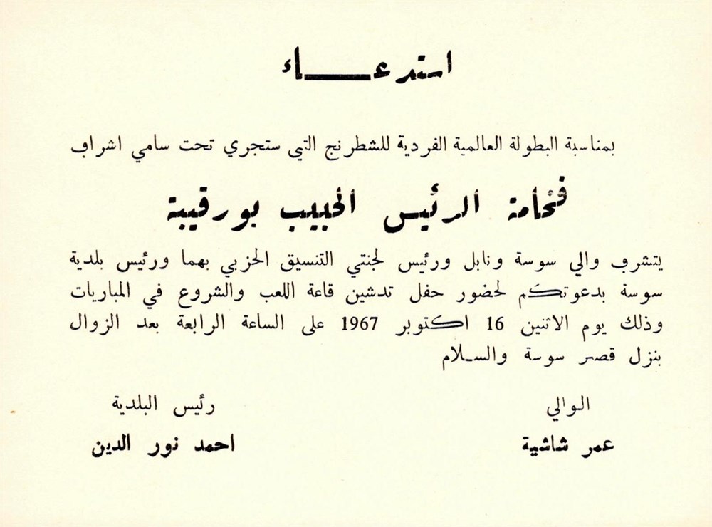 Soussa, 1967 IZT. B - "Bienvenue" to Sousse [probably !?]. Cardboard, size 14x10,5 cm, in Arabian.