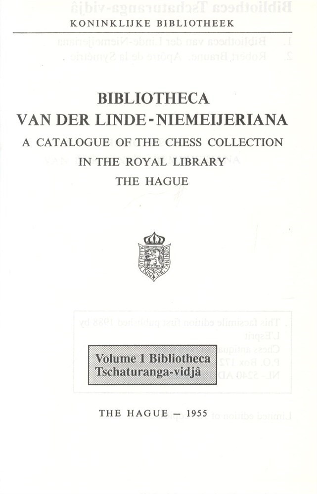 A Catalogue of the Chess Collection in the Royal Library The Hague. Published by the Koninklijke Bibliotheek.