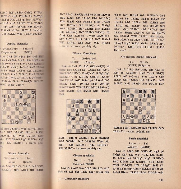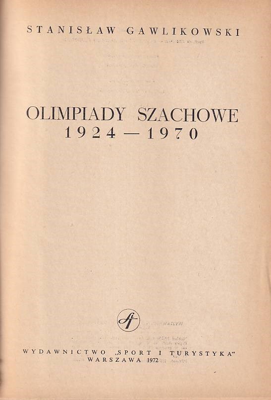 Olimpiady Szachowe 1924–1970 by Stanisław Gawlikowski is a Polish-language history of the Chess Olympiads spanning the first decades of international team chess competition. First published in 1972, it runs to 446 pages and was issued by Sport i Turystyka in Warsaw. The book covers every Olympiad from 1924 (including the unofficial 1924 Paris event) through 1970, presenting reports, results tables, and many notable games from each tournament. It was written with the aim of giving readers both the historical narrative and competitive highlights of these major events, with particular attention to such Olympiad traditions and performances over the decades.