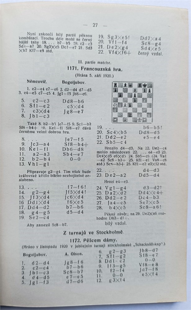 Condition - Good: private half-leather binding without lettering. Signature of a previous owner and a crossed-out stamp of the Czech chess club 'Stefanydes' in Policka on the title page. Slight foxing in the upper part of several pages.
