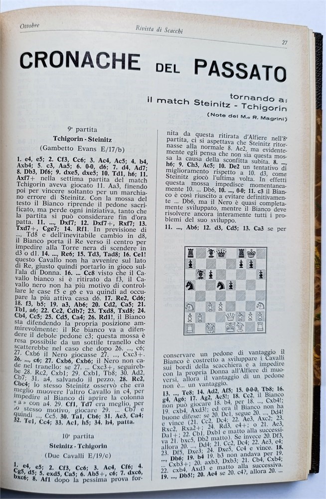 Rivista di Scacchi 1973-1974. Monthly. In Italian. Editor: Riccardo Magrini. Milano, 1973-1974. Issues 1-12. Volumes 1-2 (all published). Sanvito 902. New Sanvito 3101. Di Felice 2012.