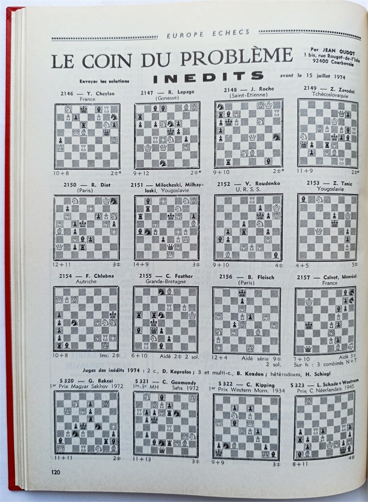 Europe Echecs 1974. Revue Internationale Mensuelle du Jeu d'Échecs. Monthly. In French. Issues 1-12 (181-192). 292 pages. Volume 16. All covers bound in (included in the pagination).Title page and index not issued. Di Felice 941.
