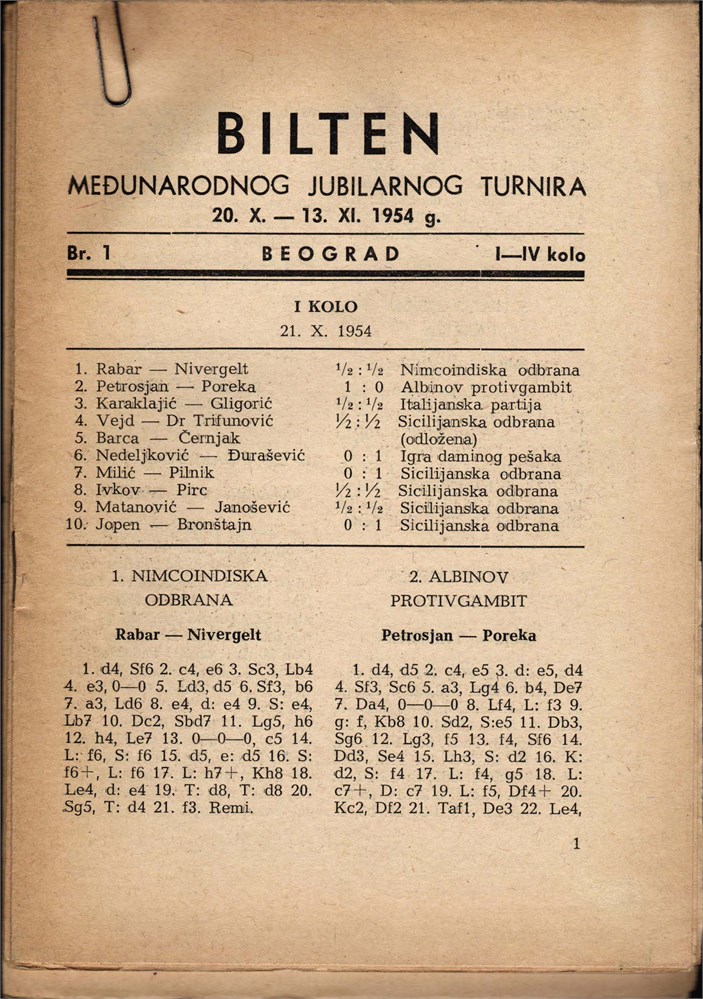 Bilten Medunarodnog jubilarnog turnira, BEOGRAD, 20.10-12.11.1954.