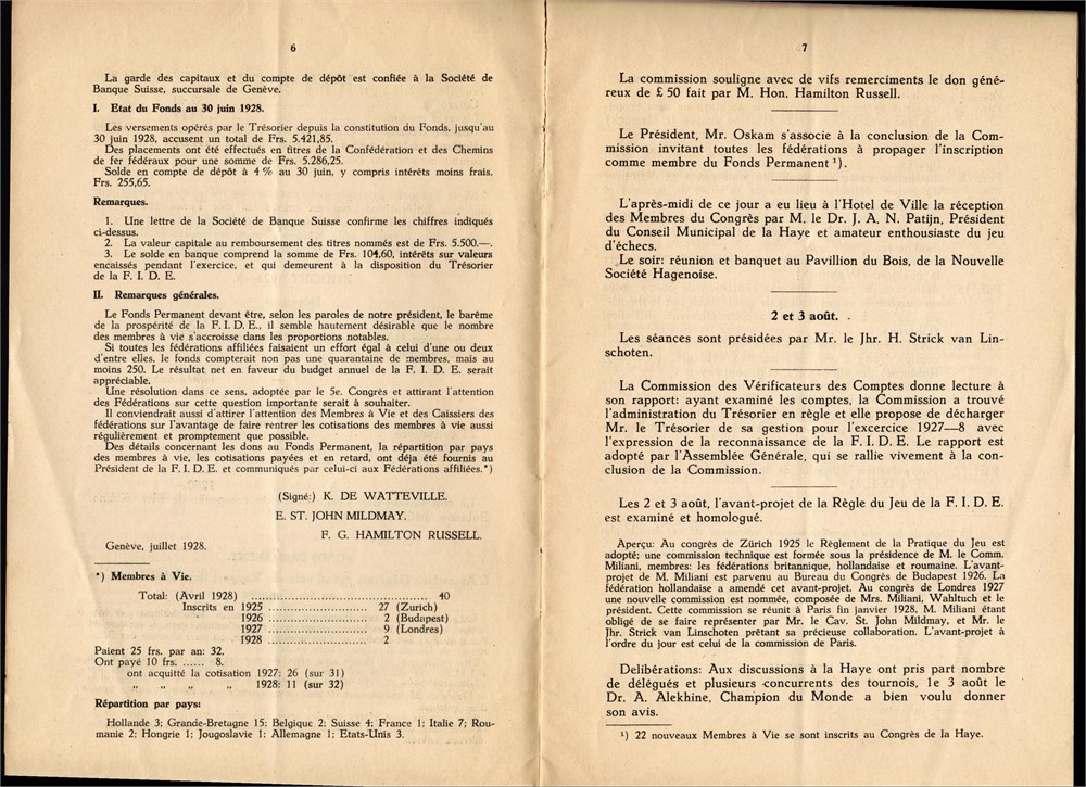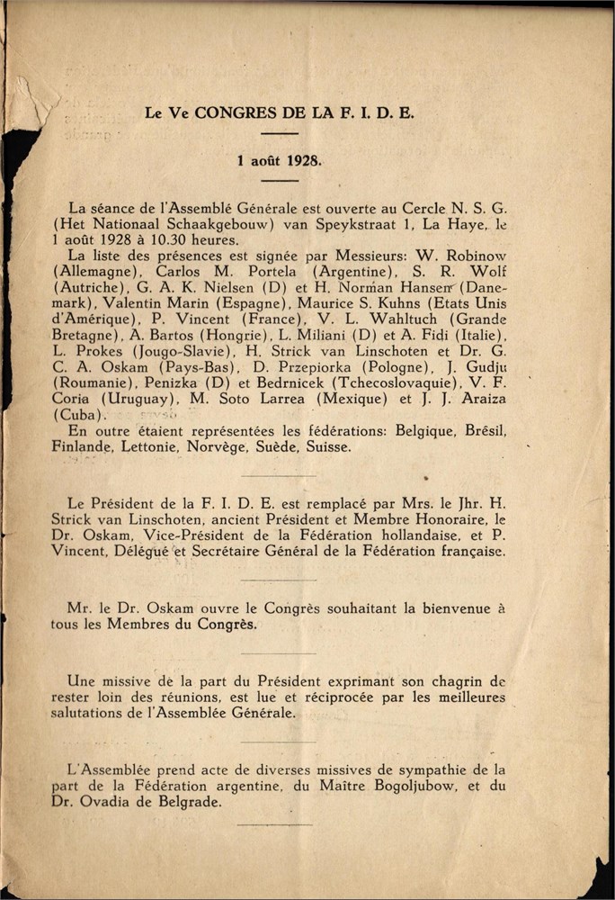 F.I.D.E. - Proces-verbal du Ve CONGRES, La Haye, 1-5 aout 1928, Imprimerie ... La Haye, 1928, 24 pages including the paper covers, size 14,5x22 cm, in French.