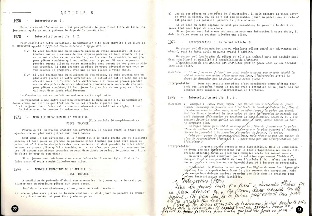 Regle du Jeu des Echecs de la Federation Internationale des Echecs. Interpretations, Diffec 1978, 56 pages, SC, size 15x21 cm, in French.