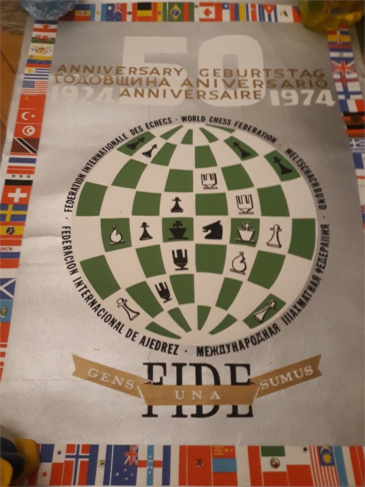 I am selling a beautiful chess poster from the 1974, for the occasion of 50 years of Fide. The poster could be framed like a picture or serve like a beautiful decoartion.