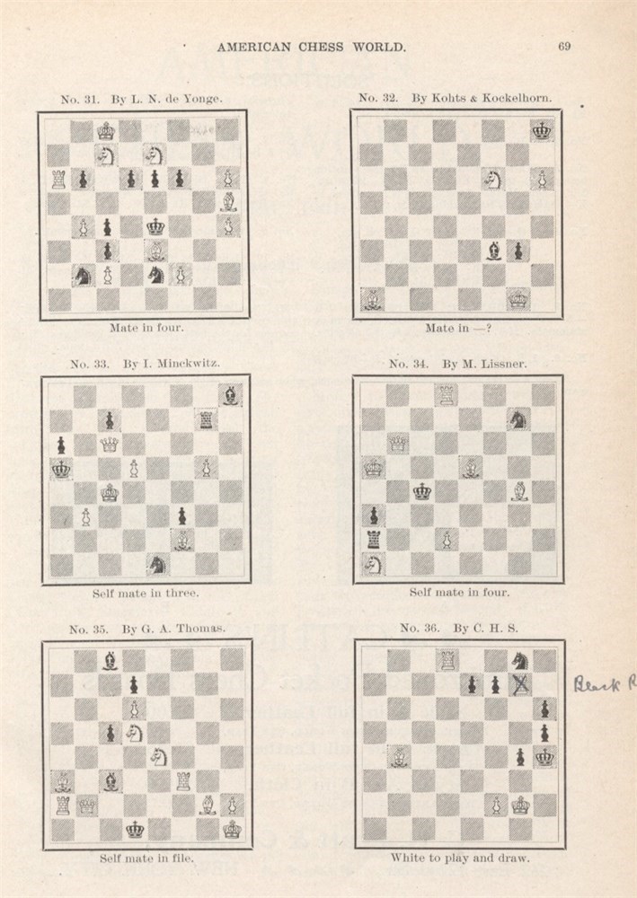 No. 1-11. (January-December 1901, no issue in August). Index is missing. Contains 128 annotated games. Problem department has 174 items with diagrams.