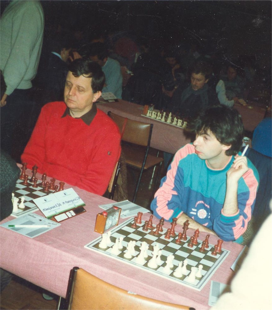 S. MARANGUNIC (JUG) and J. GALLAGHER (ENG), both in front of the black pieces. Colored photo, ii.1989, size 9x13 cm.