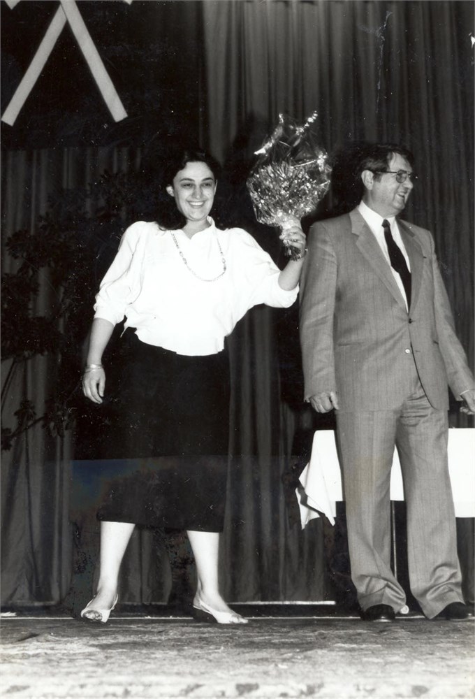 Maia CHIBURDANIDZE and Suisse tournament organiser Hans SURI, at Biel open. Size 9x12 cm.