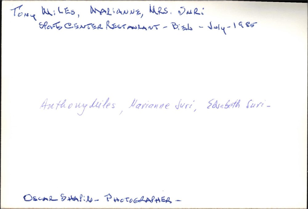 Anthony MILES, Mrs. Marianne SURI, Miss Elisabeth SURI, 1985 [PH.01.080] View Watchlist >