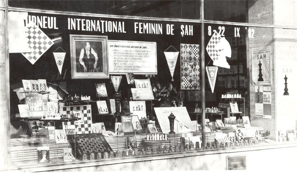 Chess exposition at the library "Mihail Eminescu", during the women international tournament from Timişoara (ROU), 08-22.ix.1982. Size 12,5x8,5 cm. Condition: very good. [PH.01.095]