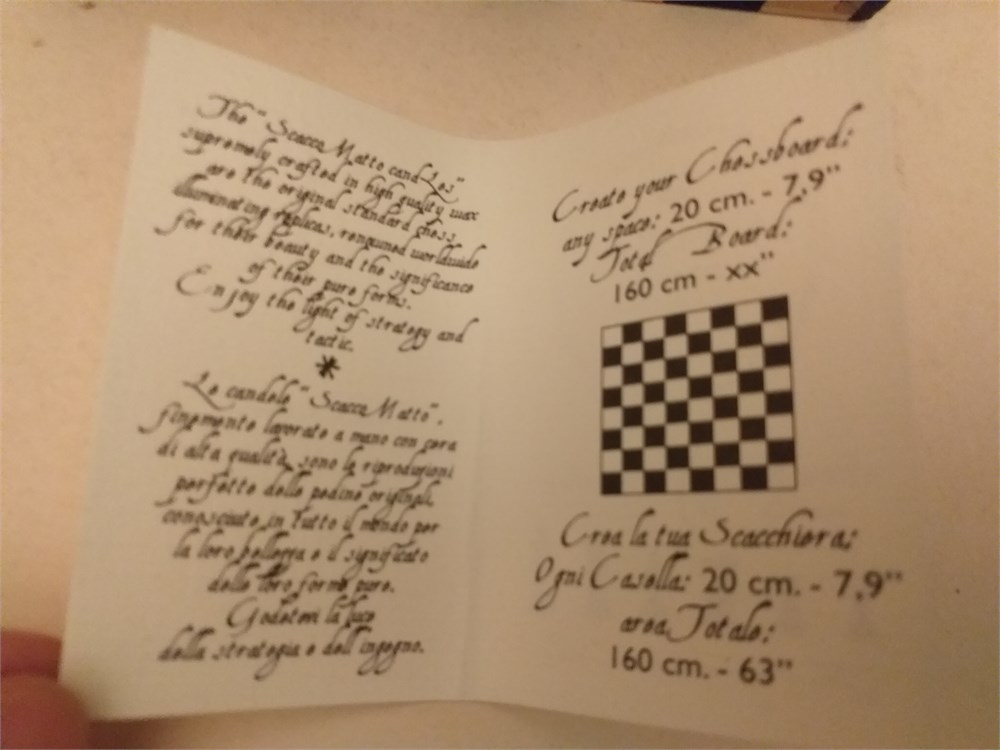 In a marvellous wooden box a giant candle (nearly 25 cm!) representing a white Knight!