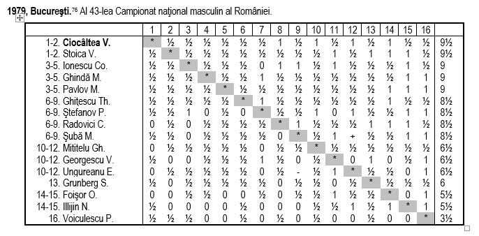 Finala Campionatului republican de șah al României (= National Championship of Romania, men), București, 03-22.xii.1979. Envelope signed by all the 16 players: M. Șubă, V. Ciocâltea, M. Pavlov, E. Ungureanu, M. Ghindă, Co. Ionescu, O. Foișor, P. Ștefanov, V. Stoica, N. Illijin, Th. Ghițescu, Gh. Mititelu etc. Chess stamp and postage stamp. Condition: good to very good. [PC.02.020]