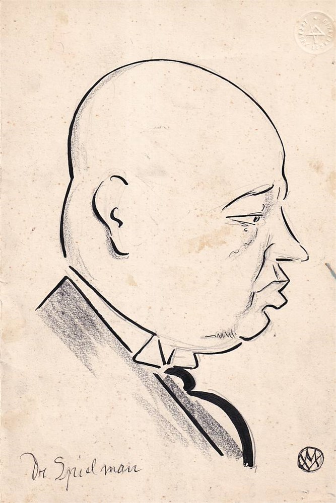 Five caricatures from the tournament by the prominent Politiken cartoonist Valdemar Møller. The ‘VW’ monogram corresponds to Møller, who often used a stylized signature. He served as a staff cartoonist at Politiken from 1920 to 1947, and the clean, economical line and profile caricatures are characteristic of his work.