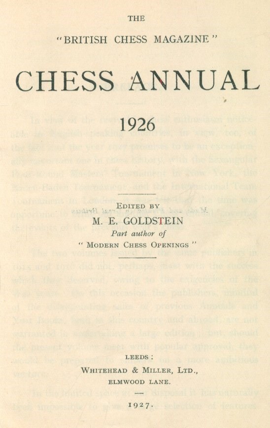 British Chess Magazine - Chess Annual 1926 View Watchlist >