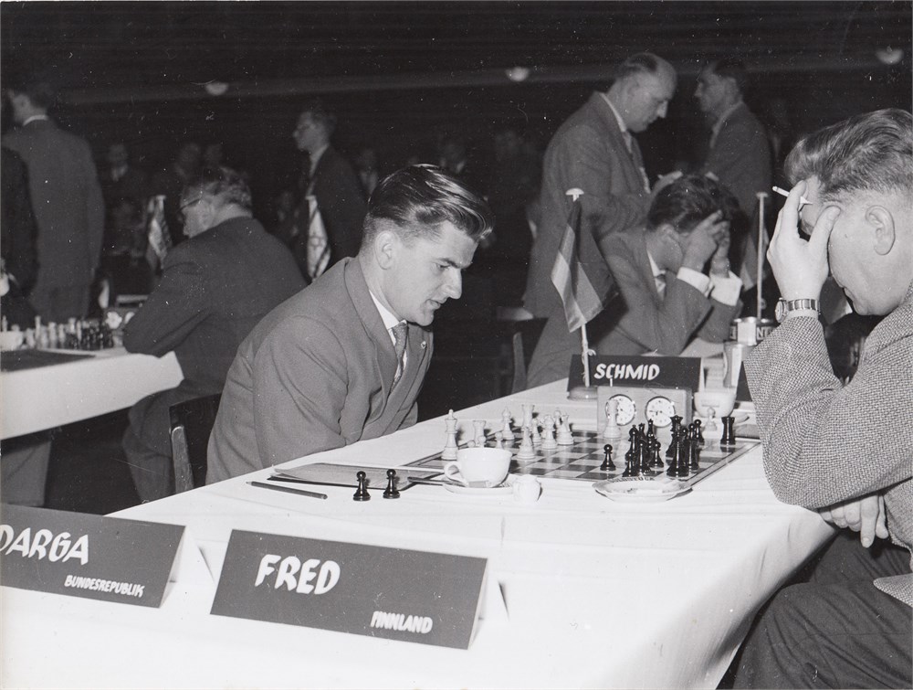 Bayerische Bild gmbh, München. 24 x 18 cm. Klaus Darga (GER) - Jala Aatos Fred (FIN). Group 2, Round 1. Condition very good.